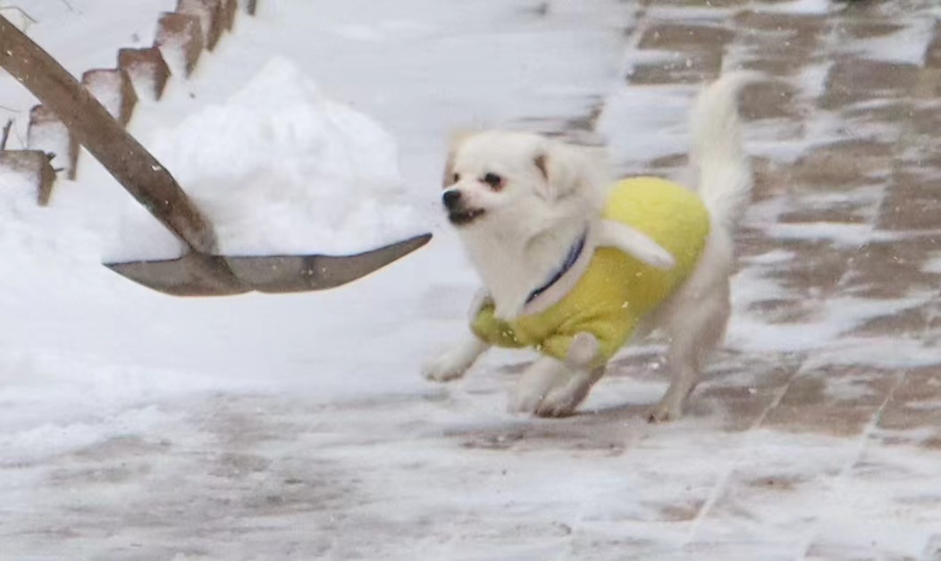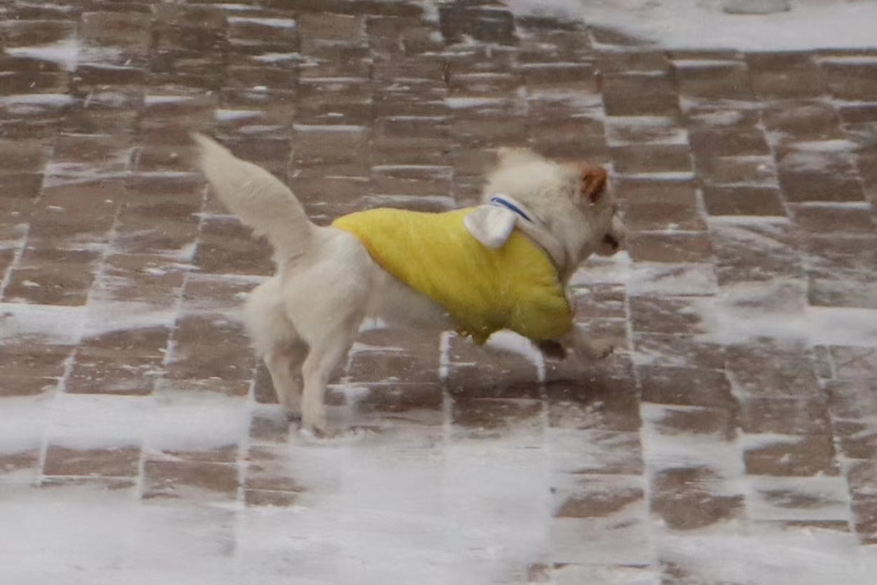蜀犬玩雪:奔跑